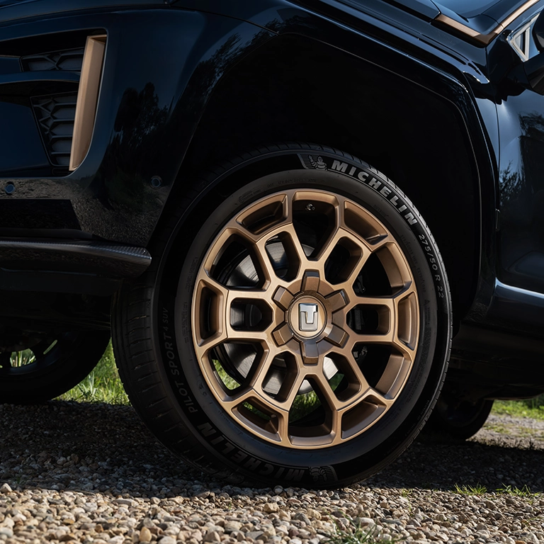 Регулировка хода пневматической пружины 120 мм. Электромагнитный амортизатор CDC. Функция прогнозирования демпфирования на миллисекундном уровне позволяет достичь максимальной производительности во всех сценариях.