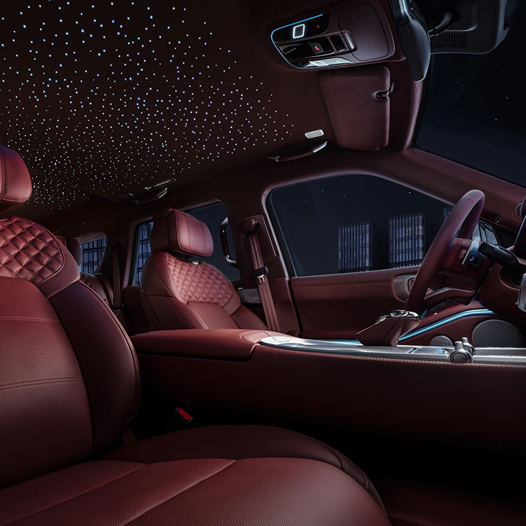 Передний и задний ряды в стандартной комплектации оснащены вентиляцией, подогревом и массажем + перьевыми подголовниками. Задние сиденья поддерживают бесступенчатую электрическую регулировку на 141°. Мягкий слой подушки сиденья составляет 15 мм спереди и 20 мм сзади, что вдвое больше. средний показатель по отрасли. Чрезвычайно удобно, как будто сидишь на оптоволоконном облаке.